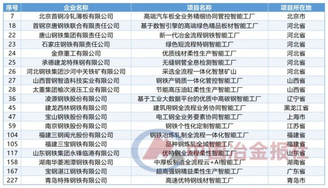 從《公示》中獲悉,多家鋼企擬入選的卓越級智能工廠(第一批)項目名單。具體情況整理如下:
