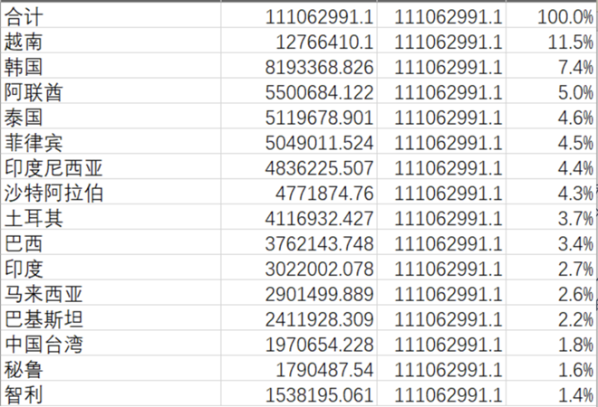 “2024年的鋼鐵出口比2023年增長超過20%,但出口美國的占比已經很小,大概只有0.8%,更多的鋼鐵產品直接出口到東盟和海合會國家,”蘭格鋼鐵研究中心副主任葛昕分析,中國對美國的鋼材出口這幾年一直是下降的趨勢,同時在加大對“一帶一路”國家,南美,南非等國家的鋼材出口。