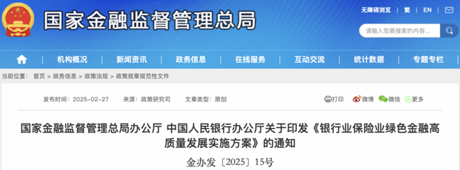 2月27日,國(guó)家金融監(jiān)督管理總局、中國(guó)人民銀行聯(lián)合發(fā)布《銀行業(yè)保險(xiǎn)業(yè)綠色金融高質(zhì)量發(fā)展實(shí)施方案》(以下簡(jiǎn)稱《實(shí)施方案》)。