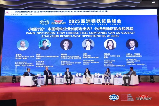 在“中國鋼鐵企業如何走出去”小組討論環節,潤飛鋼鐵烏干達公司(天津潤飛集團)董事長李春亮、埃塞俄比亞J&S金屬制造有限公司董事長薛光、阿聯酋INVEST MENA大中華區首席執行官蔡世軒、蘇美達集團國際機電事業部總經理王昕、印尼PT SUCCESS建材董事長邵秋玲,分享了海外投資、開展貿易的實踐經驗,并就鋼企走出去提出多項實用建議。
