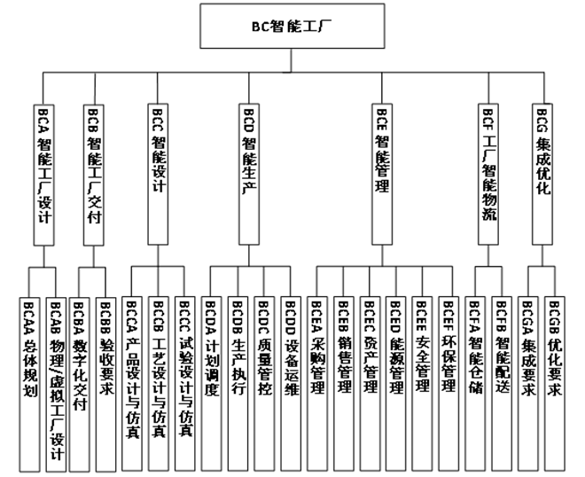 主要包括智能工廠設計、智能工廠交付、智能設計、智能生產、智能管理、工廠智能物流、集成優化等7個部分,如圖7所示。主要規定智能工廠設計與交付,智能工廠運營時的設計、生產、管理、物流、系統集成等內容。