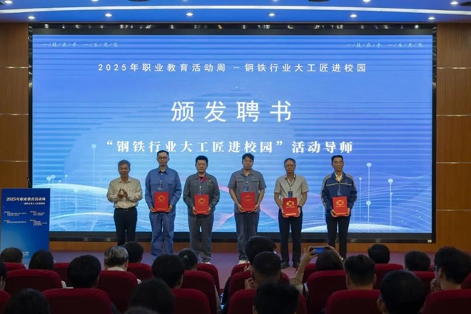 會上,李子高、榮彥明、唐笑宇、卜維平、郝軍強五位技能大師獲頒“鋼鐵行業大工匠進校園”活動導師聘書。隨后,五位導師分享了自身用工匠精神“澆灌”技能成才的心路歷程,并與在場的學生進行了互動交流。