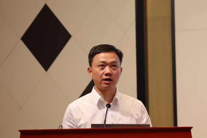 在下午的報告環節,無錫普天鐵心股份有限公司綠色電工理論與應用研究院院長張俊杰作題為《輸變電產品鐵心結構和電磁行為》的報告。