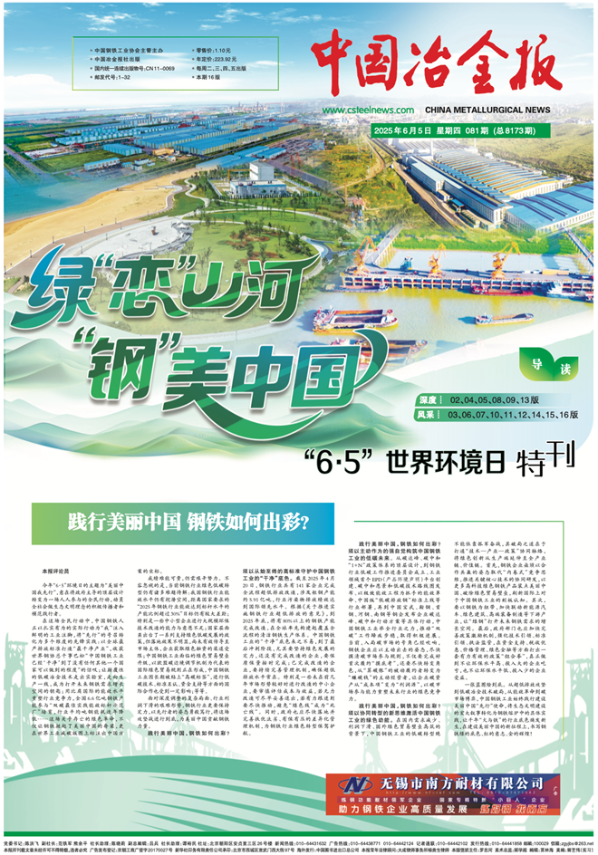 一張藍圖繪到底。從超低排放攻堅到低碳冶金技術破局,從能效革命到碳市場博弈,中國鋼鐵工業始終踐行建設美麗中國“先行”使命,將生態文明建設的宏大敘事轉化為鋼鐵熔爐中的具體實踐,讓千年“火與鐵”的行業底色煥發新生,在建設美麗中國的新征程上,書寫鋼鐵綠的底色、紅的意志、金的輝煌!