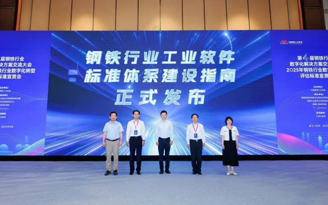 6月5日,在第四屆鋼鐵行業數字化解決方案交流大會暨2025年鋼鐵行業數字化轉型評估體系宣貫會上,由中國鋼鐵工業協會編制的《鋼鐵行業工業軟件標準體系建設指南》(以下簡稱《指南》)正式發布。