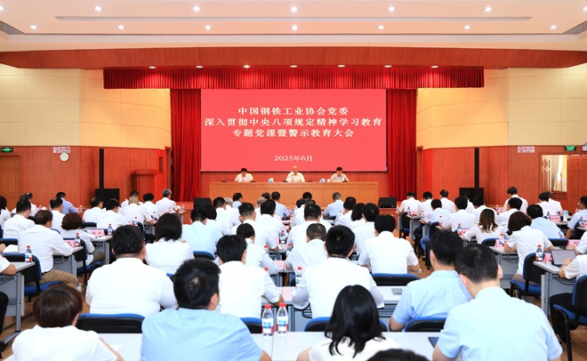 6月23日,中國鋼鐵工業(yè)協(xié)會黨委深入貫徹中央八項(xiàng)規(guī)定精神學(xué)習(xí)教育專題黨課暨警示教育大會召開。會議傳達(dá)了黨中央和中央社會工作部全國性行業(yè)協(xié)會商會黨委關(guān)于深入貫徹中央八項(xiàng)規(guī)定精神學(xué)習(xí)教育相關(guān)要求。