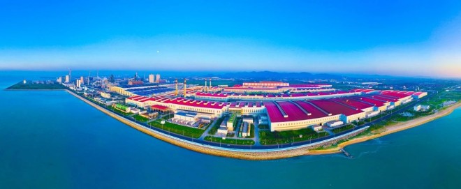 圖為2024年4月11日寶鋼股份湛江鋼鐵零碳高等級薄鋼板工廠項目正式開工建設現場。(梁青松 攝)