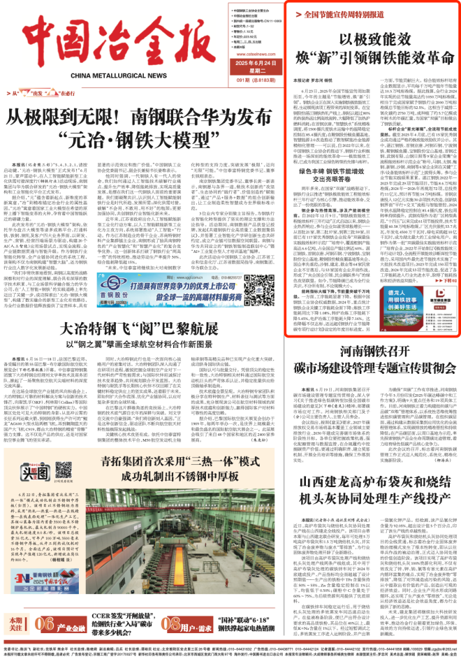 6月23日,2025年全國節能宣傳周如期而至,今年的主題是“節能增效、煥‘新’引領”。鋼鐵企業正在深入實施鋼鐵極致能效工程,生動展現該項工程帶來的深刻變革。在寶鋼股份湛江鋼鐵熱軋產線上,鋼坯以超過80%的熱裝熱送比例高效流轉,大幅降低了加熱爐燃料消耗;在首鋼京唐,“智慧鐵水”系統精準調度,將1500攝氏度鐵水運輸中的溫降穩定控制在85.4攝氏度;在鞍鋼股份鲅魚圈基地,智慧能源2.0改造推動了數智賦能冶金能源精細化管理……可以說,自2022年以來,在中國鋼鐵工業協會的推動下,鋼鐵行業積極推進一場深刻的能效革命——極致能效工程,已成為我國工業綠色轉型的先鋒與標桿。
