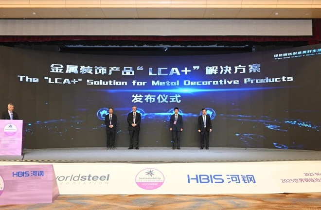 開幕式上,劉鍵、埃德溫·巴松、劉安棟、李華剛共同啟動發(fā)布金屬裝飾產品“LCA+”解決方案項目成果。該項成果是世界鋼鐵協(xié)會聯(lián)合河鋼開展金屬裝飾產品“LCA+”解決方案的研究,在生命周期評估(LCA)基礎上,創(chuàng)新性地融合生活美好指數的概念,為建筑裝飾領域綠色轉型提供新路徑。