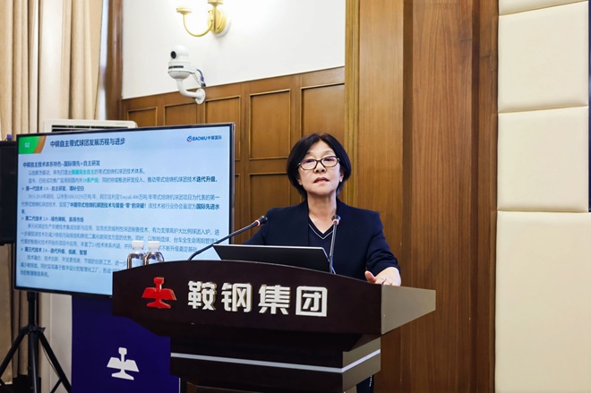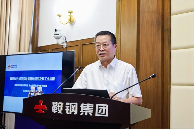 圖為鞍山鋼鐵技術中心煉鐵所首席專家周明順作《鞍鋼堿性球團實驗室基礎研究及其工業(yè)應用》主題報告