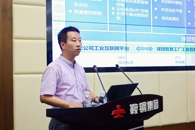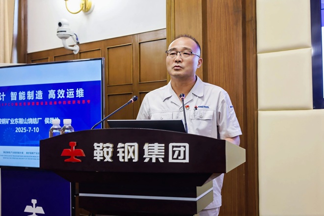 圖為鞍鋼礦業(yè)東鞍山燒結廠廠長侯恩儉作《創(chuàng)新設計 智能制造 高效運維——在新形勢下鋼鐵行業(yè)EPCO模式在球團建設及運維中的收獲與思考》主題報告