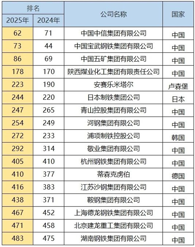 這些涉鋼企業(yè)上榜!2025《財富》世界500強排行榜揭曉