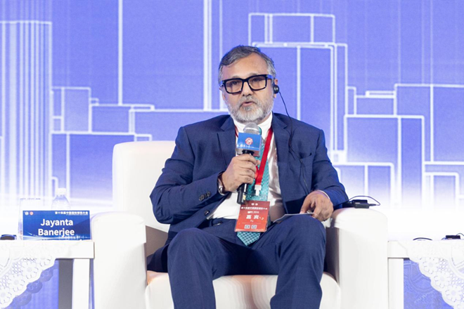 圖為賈揚塔·班納吉出席“數智驅動”論壇