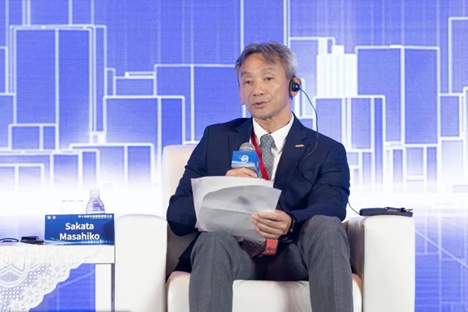 圖為山下隆也出席“世界鋼鐵市場和產業動向”論壇