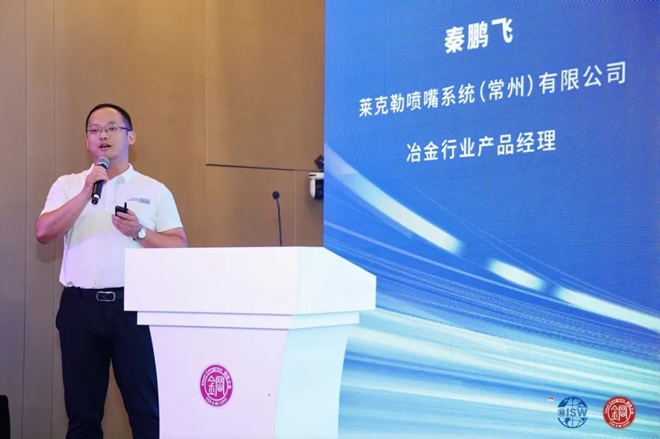 萊克勒噴嘴系統(常州)有限公司冶金行業產品經理秦鵬飛在發言中詳細介紹了萊克勒第四代除鱗噴嘴的性能優勢,該產品具備更好的除磷效果、更高的能耗效率、更優的集管結構,將幫助鋼鐵企業節水節電,降低成本和二氧化碳排放。