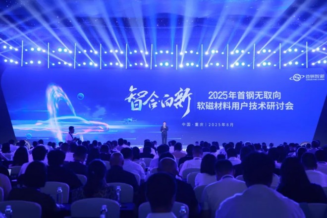 8月14日,“智合·向新”2025年首鋼無取向軟磁材料用戶技術研討會在重慶召開。現場全球首發兩款高性能無取向電工鋼產品,多項首創技術成果與前沿應用集中亮相。中國鋼鐵工業協會副會長駱鐵軍,首鋼集團副總經理朱國森,首鋼集團技術研究院、首鋼股份及首鋼智新領導,行業專家、用戶代表、首鋼軟磁材料產銷研團隊代表,共計400余人參加會議。
