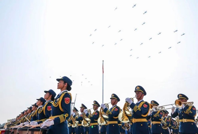 2025年9月3日,紀(jì)念中國(guó)人民抗日戰(zhàn)爭(zhēng)暨世界反法西斯戰(zhàn)爭(zhēng)勝利80周年大會(huì)在北京隆重舉行。這是中國(guó)人民解放軍聯(lián)合軍樂(lè)團(tuán)和觀禮的嘉賓。新華社記者 鞠煥宗 攝