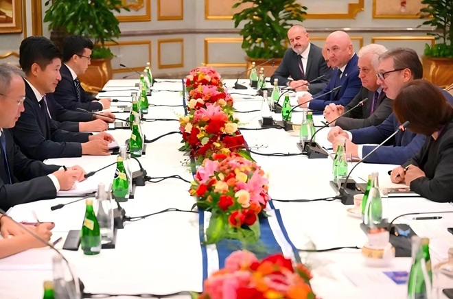 9月3日,來華出席紀(jì)念中國人民抗日戰(zhàn)爭暨世界反法西斯戰(zhàn)爭勝利80周年活動的塞爾維亞總統(tǒng)武契奇在北京會見河鋼集團(tuán)董事長劉鍵。雙方回顧了既往合作成果,重點(diǎn)探討了共建中塞聯(lián)合實(shí)驗(yàn)室和未來發(fā)展藍(lán)圖等內(nèi)容。