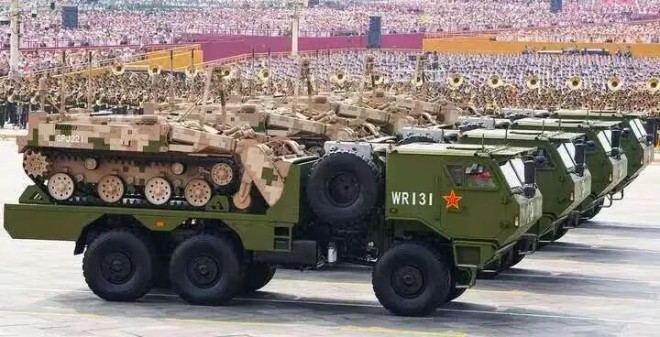 伴隨著激昂雄壯的軍樂(lè)聲,空中護(hù)旗梯隊(duì)、徒步方隊(duì)、戰(zhàn)旗方隊(duì)、裝備方隊(duì)、空中梯隊(duì)依次通過(guò)天安門廣場(chǎng)。20多個(gè)裝備方隊(duì)鐵甲奔涌、排山倒海、動(dòng)地而來(lái)。數(shù)百臺(tái)地面裝備宛如一條鋼鐵巨龍。“鋼鐵洪流,勢(shì)不可擋。”“陸上猛虎,海上蛟龍。”“海天盾牌,御敵鎧甲。”“長(zhǎng)纓在手,敢縛蒼龍。”“國(guó)之重器,壓艙基石。”“東風(fēng)浩蕩,威震寰宇。”……多么氣勢(shì)磅礴、令人振奮的詞匯!看,坦克車、兩棲輪式裝甲突擊車、步兵戰(zhàn)車、自行榴彈炮、遠(yuǎn)程火箭炮等陸上作戰(zhàn)裝備;紅旗系列艦空導(dǎo)彈、鷹擊系列反艦導(dǎo)彈、各式魚雷等海上作戰(zhàn)裝備;紅旗系列防空導(dǎo)彈、反導(dǎo)攔截彈、激光武器、微波武器等防空反導(dǎo)武器裝備;衛(wèi)星通信等信息作戰(zhàn)裝備;無(wú)人反坦克車、機(jī)器狼、無(wú)人潛航器、無(wú)人作戰(zhàn)艇、無(wú)人機(jī)等無(wú)人作戰(zhàn)裝備;裝備搶救車等后勤保障裝備;長(zhǎng)劍系列巡航導(dǎo)彈、鷹擊系列巡航導(dǎo)彈、東風(fēng)系列彈道導(dǎo)彈、洲際彈道導(dǎo)彈、巨浪系列潛射導(dǎo)彈等戰(zhàn)略打擊武器;預(yù)警機(jī)、殲擊機(jī)、運(yùn)輸機(jī)、轟炸機(jī)、加油機(jī)、教練機(jī)等空軍裝備……多么令人震撼的場(chǎng)面!尤其是“打擊范圍覆蓋全球”的東風(fēng)-5C液體洲際戰(zhàn)略核導(dǎo)彈出場(chǎng)時(shí),引起了全場(chǎng)經(jīng)久不息的贊嘆。這樣的體系化作戰(zhàn)裝備,充分彰顯我軍新質(zhì)戰(zhàn)斗力以及捍衛(wèi)國(guó)家利益、維護(hù)世界和平的強(qiáng)大能力。