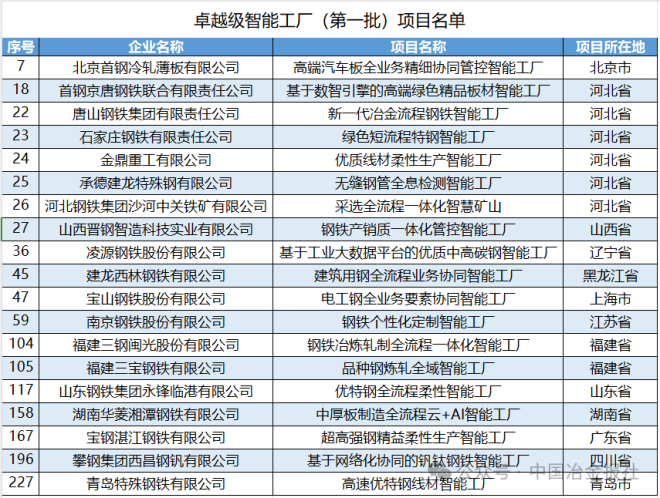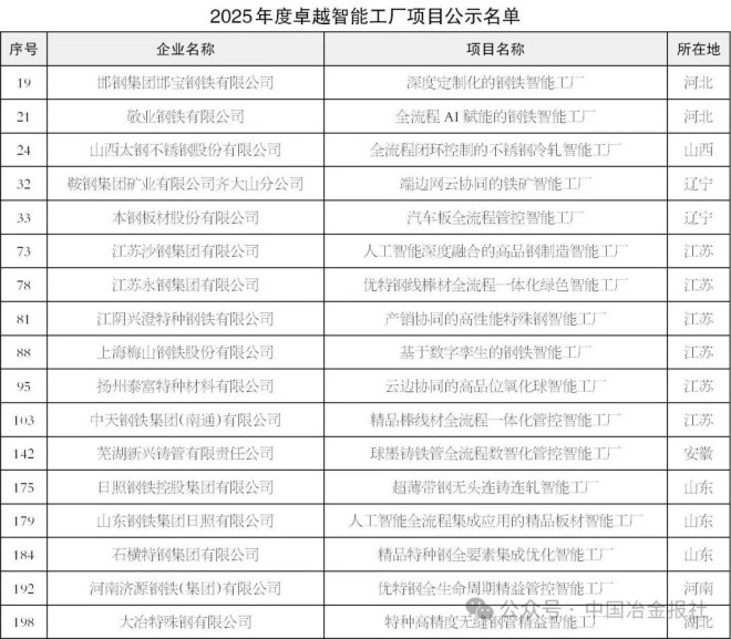 9月4日,工信部網站發布《關于2025年度卓越級智能工廠項目的公示》(以下簡稱《公示》)。據《中國冶金報》記者不完全統計,鋼鐵行業有17個卓越級智能工廠項目上榜,疊加今年初發布的首批19個項目,鋼鐵行業共計已有36家卓越級智能工廠。