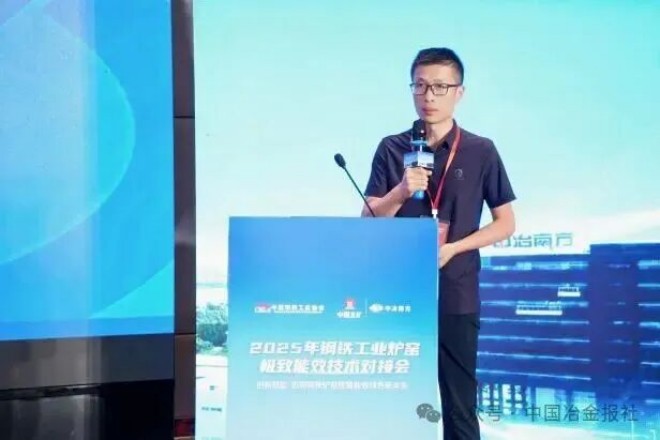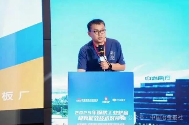 圖為北京首鋼國際工程技術有限公司陳迪安作題為《軋鋼加熱爐綜合節能減排與質量提升耦合技術研究與應用實踐》報告