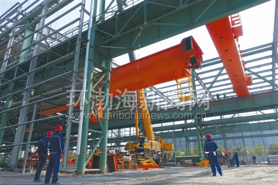 圖為承擔(dān)建設(shè)任務(wù)的中國(guó)五冶集團(tuán)正在吊裝巨型天車。