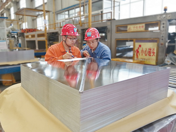 今年初以來,河鋼衡板加大客戶回訪力度,定期深入客戶產(chǎn)線,了解客戶需求,及時調(diào)整產(chǎn)品結(jié)構(gòu),不斷改進裝機水平和工藝條件。上半年,該公司高端鍍錫產(chǎn)品直銷量同比提升 8.91個百分點。圖為7月5日,該公司檢驗人員正在認(rèn)真抽查馬口鐵盒板尺寸。(牛萬強 攝)