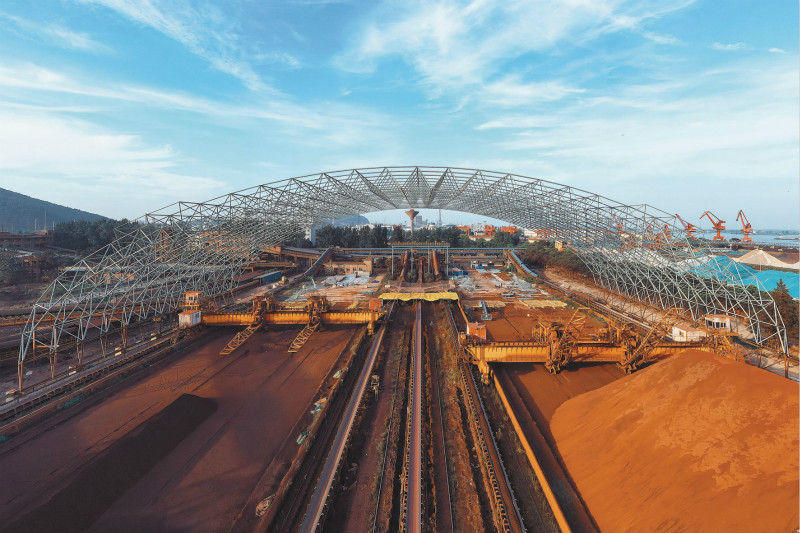作為毗鄰長江的現代都市工廠,馬鋼堅持“共抓大保護、不搞大開發”,于今年3月底投資15億元,對地處長江邊的原料廠實施環保升級及智能化改造。改造后,可有效減少環境污染,徹底杜絕物料風損,大幅提高系統及設備的作業效率。圖為地處長江邊的已具雛形的馬鋼港料總廠西側混勻料場B型料棚。 (特約通訊員 張明偉 攝)