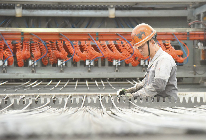 11月20日,馬鋼比亞西公司職工在精心加工具有自主知識產(chǎn)權的鋼筋焊網(wǎng),兌現(xiàn)高鐵建設領域用戶的訂單(如圖)。今年初以來,該公司依靠優(yōu)質產(chǎn)品和服務打響比亞西焊網(wǎng)品牌,1月~10月份累計向高鐵用戶提供高鐵用鋼筋焊網(wǎng)5萬噸。 (特約通訊員 胡智慧 攝)