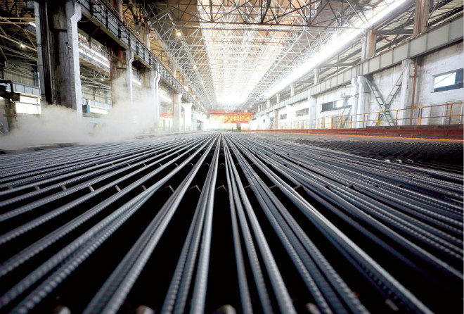 近日,山鋼股份萊蕪分公司棒材廠熱軋產線成功開發并試制了600兆帕級熱軋帶肋鋼筋9個規格。該產品通過了國家市場監督管理總局全國工業產品生產許可證認證審核,山鋼萊蕪分公司正式拿到了生產銷售的通行證。圖為該棒材廠600兆帕級熱軋帶肋鋼筋生產線。(欒長河 王玉軍 攝)