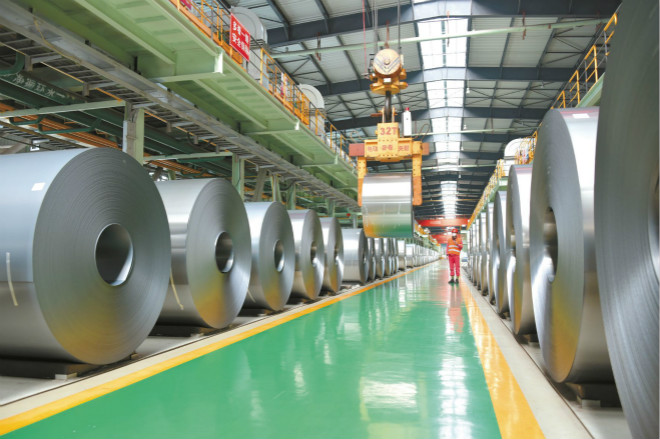2月27日,沙鋼集團(tuán)冷軋廠硅鋼車間成功調(diào)試生產(chǎn)SG50WH470牌號硅鋼。據(jù)了解,該產(chǎn)品是目前沙鋼冷軋生產(chǎn)的50系列產(chǎn)品中最高牌號硅鋼,具有高效能、低能耗、低碳環(huán)保等顯著特點(diǎn),適用于制造新能源汽車電機(jī)、高效工業(yè)電機(jī)等裝備。圖為沙鋼冷軋硅鋼車間生產(chǎn)現(xiàn)場。 (孫靜波 丁超 攝)