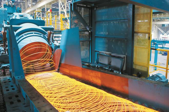 7月1日,世界第一座公鐵兩用斜拉橋——滬蘇通長江大橋正式通車。該橋所用斜拉索采用了中信泰富特鋼集團(tuán)旗下興澄特鋼、青島特鋼自主研發(fā)生產(chǎn)的世界最高強(qiáng)度2000兆帕級纜索鋼絲用盤條,實(shí)現(xiàn)了2000兆帕級纜索鋼絲用盤條在特大型橋梁建設(shè)中的首次應(yīng)用。據(jù)悉,該橋共有432根斜拉索,每根斜拉索由直徑7毫米的鋼絲組成,單根斜拉索成橋最大索力可達(dá)1000噸,能吊起600多輛小汽車。圖為興澄牌高強(qiáng)纜索盤條生產(chǎn)現(xiàn)場。 (特約通訊員 陸衛(wèi)宇/ 攝 孫中偉 程文文/文)