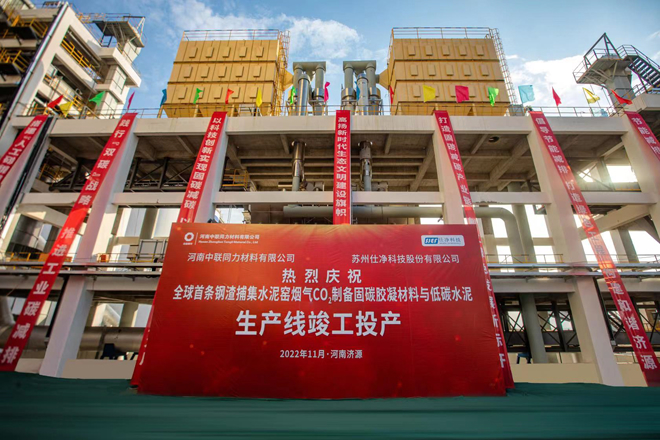 2022年11月14日上午,全球首條鋼渣捕集水泥窯煙氣CO2制備固碳輔助性膠凝材料與低碳水泥生產(chǎn)線在河南省濟(jì)源中聯(lián)水泥有限公司竣工投產(chǎn),這標(biāo)志著我國水泥行業(yè)CO2捕集利用技術(shù)和產(chǎn)業(yè)化運(yùn)用邁上新的臺階,為鋼渣規(guī)模化安全應(yīng)用于建材,實(shí)現(xiàn)高值資源化利用開辟了新的途徑。