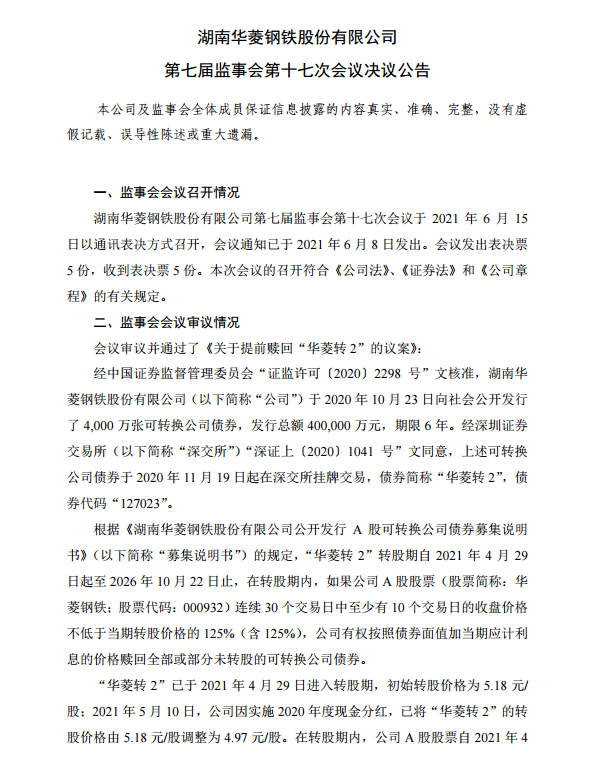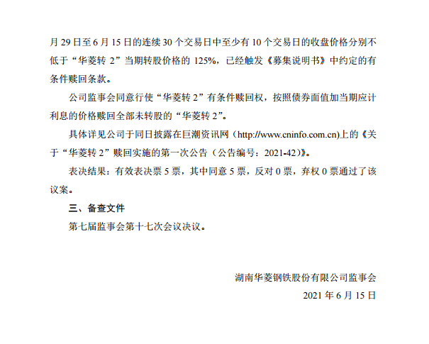 華菱鋼鐵:第七屆監事會第十七次會議決議公告