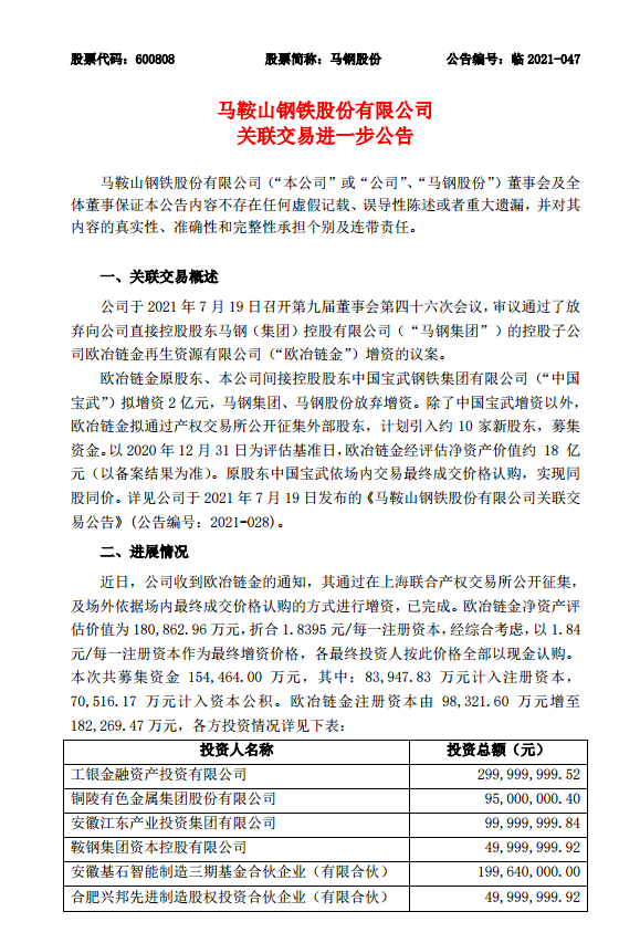 馬鞍山鋼鐵股份有限公司關聯交易進一步公告
