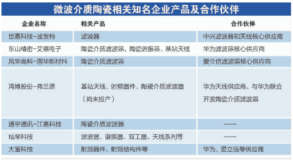 A股公司布局微波介質陶瓷相關企業主要有東山精密、鴻博股份、通宇通訊等。