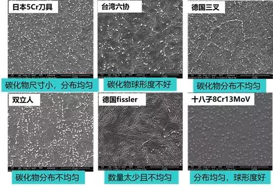 圖. 十八子廚刀與國內外高品質廚刀顯微組織對比