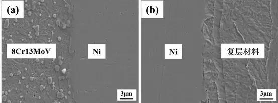 通過軋制復合工藝實現了“好鋼用在刀刃上”的理念。復合板集聚了基層和復層的優點,不但有效利用了基層材料 8Cr13MoV 的高強度、高硬度等力學性能,同時又具有復層材料耐蝕性優良、韌性好等特殊性能,既可以降低制備成本,又可以達到使用要求。