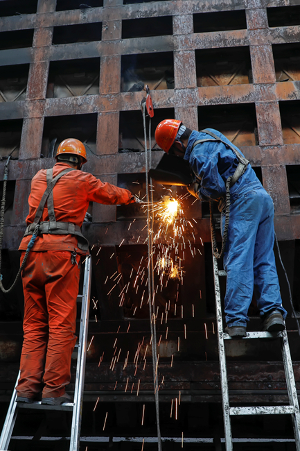 11月10日,首鋼水鋼公司循環(huán)經(jīng)濟(jì)配套工程干熄焦停裝紅焦,77號(hào)碳化室轉(zhuǎn)濕熄,為期20天的干熄焦系統(tǒng)年修拉開序幕。該公司干熄焦設(shè)備全部采用日本原裝設(shè)備,自動(dòng)化程度高,每年必須進(jìn)行一次檢修。圖為水鋼維檢中心職工正在對(duì)干熄焦焦罐進(jìn)行檢修加固。(楊德清 孫濤 攝)