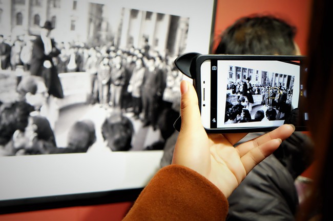 圖為參觀中,中國冶金報社的編輯、記者們不時地用手機(jī)記錄下攝影展上一幅幅優(yōu)秀的新聞攝影作品。