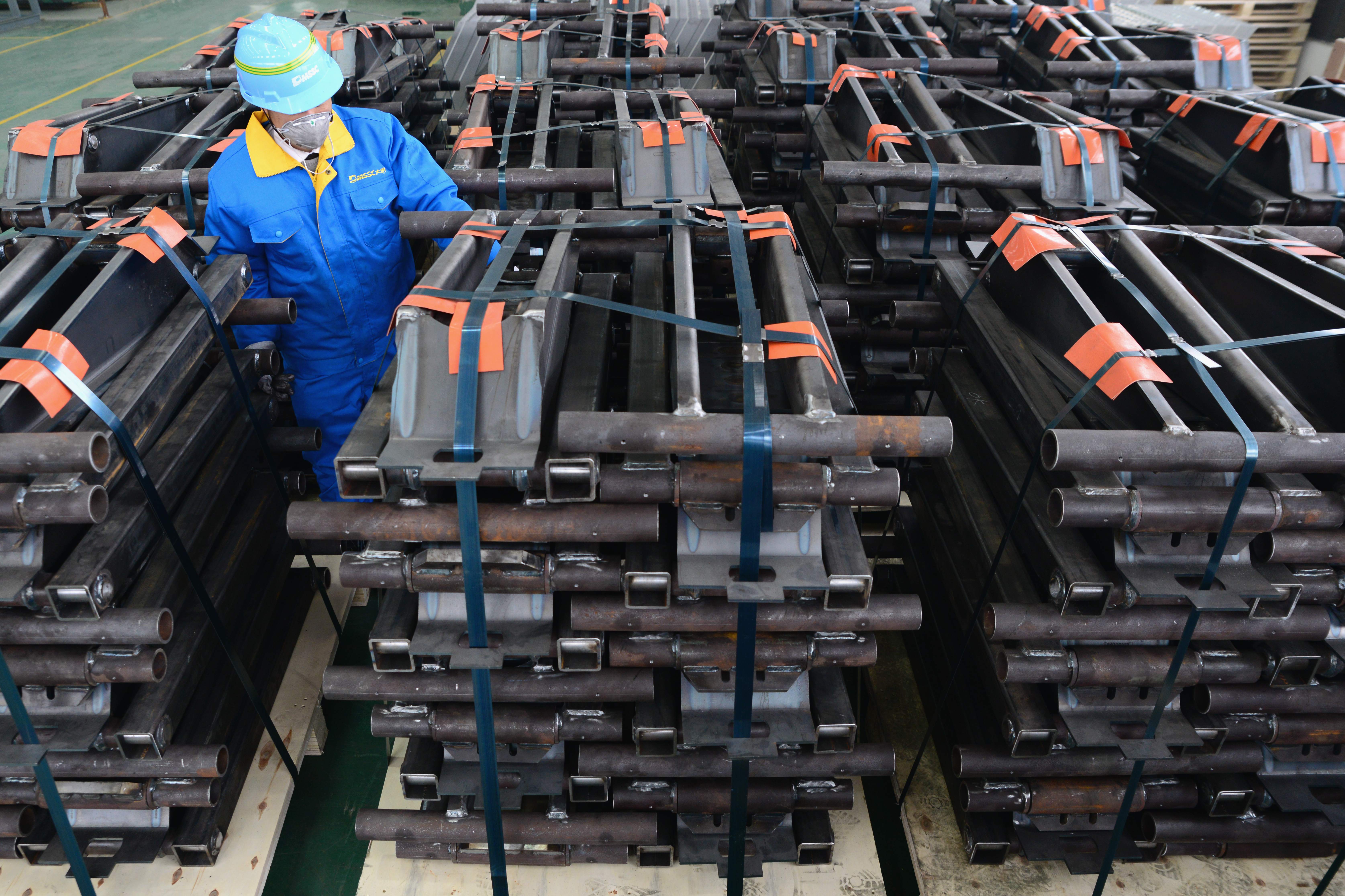 一位工人正在檢查即將發(fā)往美國(guó)的拖車(chē)部件。