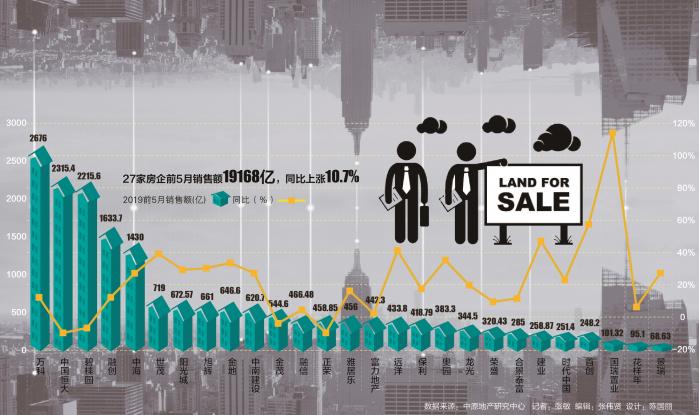 根據(jù)易居克而瑞的數(shù)據(jù),2019年1-5月,TOP100房企整體銷售業(yè)績規(guī)模近3.5萬億元,同比微增4.1%。與去年動(dòng)輒超過30%的增速相比,降幅明顯。