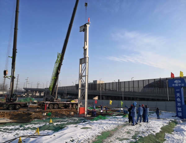 此次吊裝的主廠(chǎng)房為單層門(mén)式鋼框架結(jié)構(gòu),軸線(xiàn)長(zhǎng)度480m,跨度達(dá)96m,建筑面積435000㎡,其中鋼結(jié)構(gòu)工程量約7000噸。鋼柱為門(mén)式格構(gòu)柱,柱高約25米,柱距為15米,基礎(chǔ)為杯口基礎(chǔ)。自2019年11月18日開(kāi)工以來(lái),面對(duì)工期緊、鋼結(jié)構(gòu)體量大及柱基礎(chǔ)施工期間處于北方冬季等諸多困難,項(xiàng)目部編制科學(xué)的施工組織設(shè)計(jì)和冬季施工方案,對(duì)現(xiàn)場(chǎng)土建基礎(chǔ)施工、冬季施工質(zhì)量控制、吊裝次序等都作出了明確的安排部署。截止目前,已先后施工完成管井降水、基坑開(kāi)挖土方兩萬(wàn)兩千方、柱基礎(chǔ)承臺(tái)混凝土澆筑兩千四百方。此次鋼結(jié)構(gòu)柱順利吊裝,為太鋼高端冷軋取向硅鋼項(xiàng)目的穩(wěn)步推進(jìn)作出了有力保障。