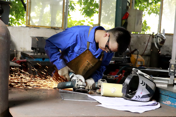 圖為第46屆世技賽建筑金屬構(gòu)造項目集訓選手正在中國十九冶攀枝花技師學院緊張訓練。