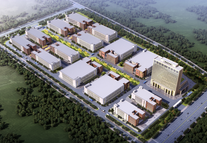 該項目位于安徽阜南縣經濟開發區,用地面積約332畝,總規劃建筑面積約為32萬平方米。其中,多層標準化工業廠房14棟,建筑面積共25.34萬平方米;綜合服務樓1棟,建筑面積6.17萬平方米。地下建筑面積約1.63萬平方米。項目容積率1.49,設停車位961個(地上車位593個,地下車位368個),非機動車停車位為4352個。