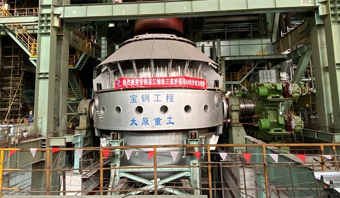 寶鋼湛江鋼鐵三高爐系統項目煉鋼工程是在一期已建3座350噸轉爐的基礎上再新增350噸轉爐。此350噸轉爐目前為全國最大轉爐,轉爐上部爐殼重231噸、直徑8.6米、高7.4米,托圈重275噸、直徑10.8米、高2.8米,下部爐殼重110噸、直徑8.6米、高4.4米。項目竣工后,寶鋼湛江鋼鐵煉鋼廠將成為全球最大的單體煉鋼車間,年產鋼水達1253萬,年產鋼坯達1235萬噸,人均達2500噸鋼/年。