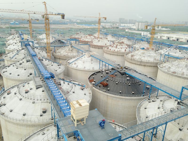 “中秋、國(guó)慶”雙節(jié)期間,中國(guó)一冶承建的東莞市虎門港麻涌港區(qū)新沙南作業(yè)區(qū)2號(hào)、3號(hào)泊位散糧倉(cāng)庫(kù)三期項(xiàng)目TC3301倉(cāng)頂?shù)诙位炷翝仓瓿桑瑯?biāo)志著該項(xiàng)目筒倉(cāng)主體結(jié)構(gòu)全部封頂。