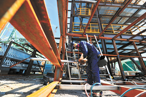 圖為該項(xiàng)目部現(xiàn)場(chǎng)施工作業(yè)人員在烈日下進(jìn)行焊接作業(yè)。