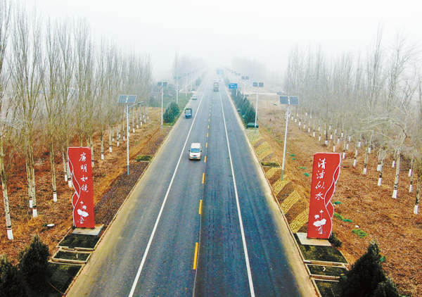 白洋淀大道留村至容城縣界改造提升子項(xiàng)目,是安新縣“攻堅(jiān)50天,提質(zhì)換新顏”行動(dòng)謀劃實(shí)施的重點(diǎn)項(xiàng)目之一,主要包括留村至三臺(tái)路口及旅游路亮化景觀提升等工程,還包括對8.3公里長的容城縣界至安新三臺(tái)路口路段兩側(cè)進(jìn)行綠化提升,栽種白皮松、北美海棠、紫薇、紅瑞木、金枝槐等景觀樹種,沿途修建了萬松迎客、潮涌魚躍、水潤雄安、雄安畫卷等4處景觀節(jié)點(diǎn)。這些景觀融合了雄安本土文化與自然風(fēng)貌,使安新縣更有識(shí)別性和特色。