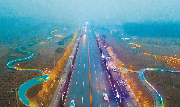 春節(jié)將至,位于雄安新區(qū)安新縣旅游大道兩邊的“七彩飄帶”景觀亮化工程全線點(diǎn)亮,吸引不少市民前去“打卡”玩耍。